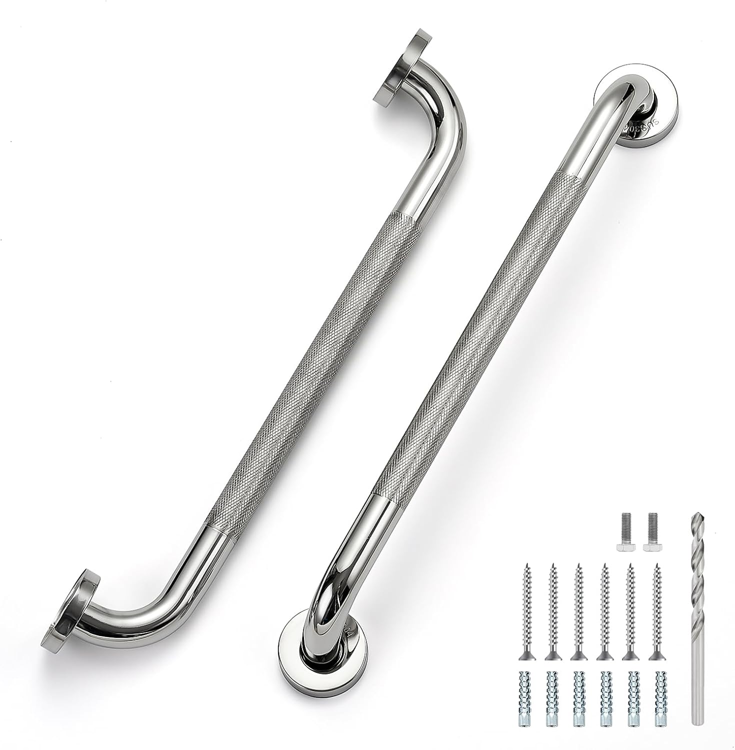 18 Inch Grab Bars for Shower, Stainless Steel Safety Handicap Grab Bars for Bathroom, Anti-Slip Shower Handle, Wall Mounted (2 Pack, Polished Nickel)