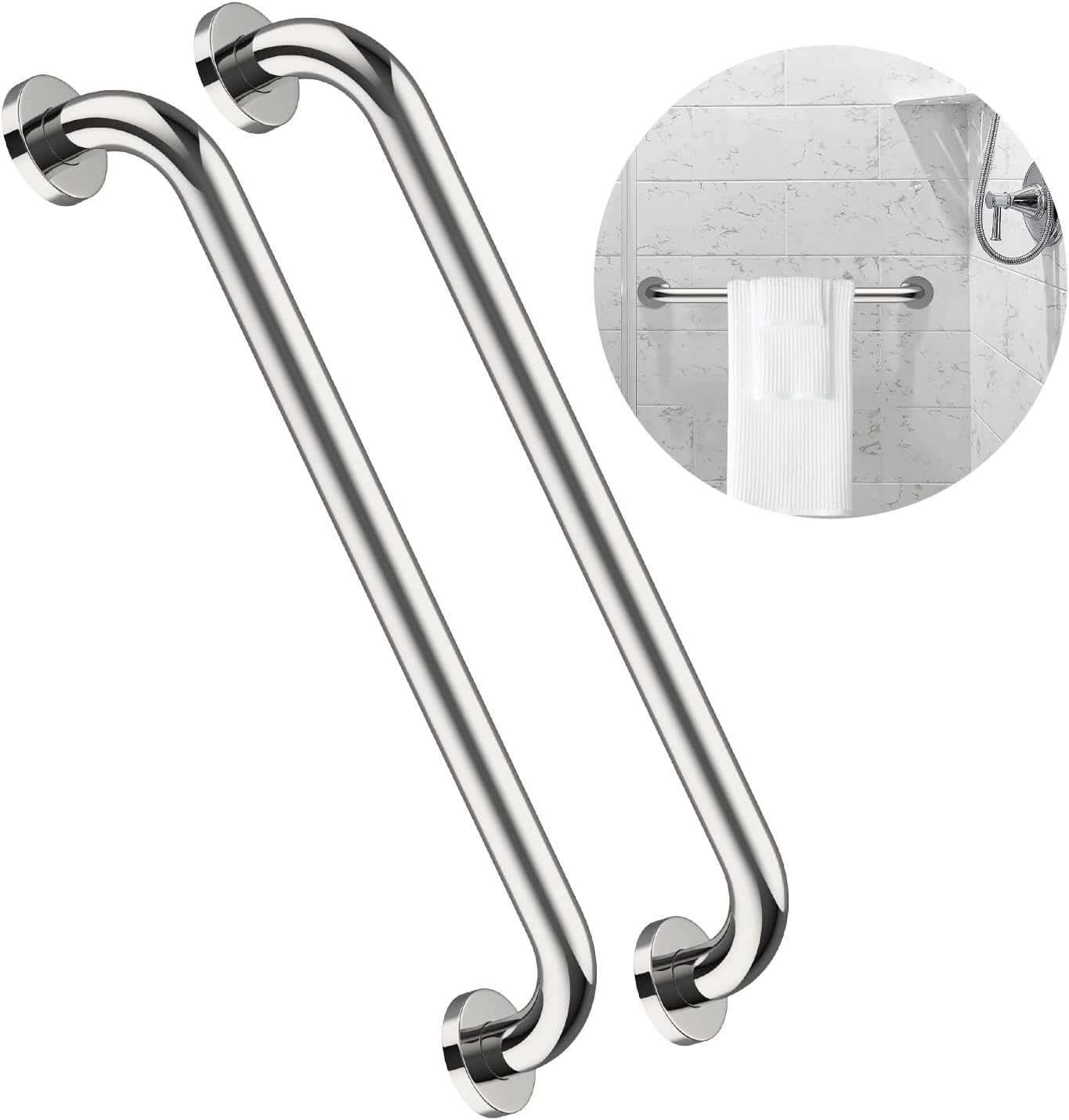 2 Pack 24 Inch Shower Grab Bar, ZUEXT Chrome Stainless Steel Bathroom Grab Bar Handle, Bathroom Shower Balance Bar, Safety Hand Rail Support, Handicap Elderly Senior Assist Bath Handle(1.25″ Diameter)