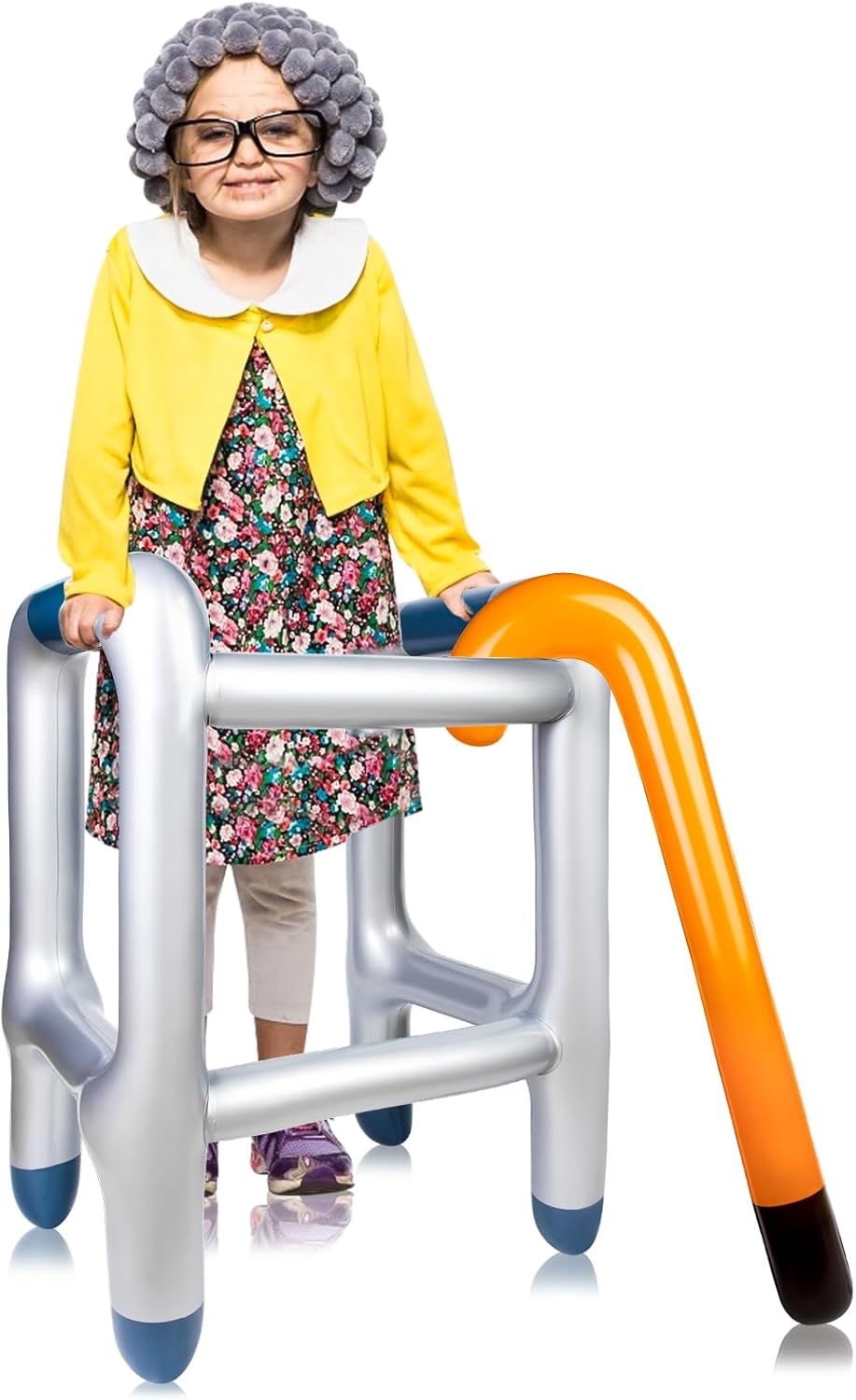 2 Pcs Inflatable Walker and Cane, 100th Day of School for Old Age Costume Prop, Blow Up Walker Cane Funny Gag Gifts for Halloween Christmas Costume