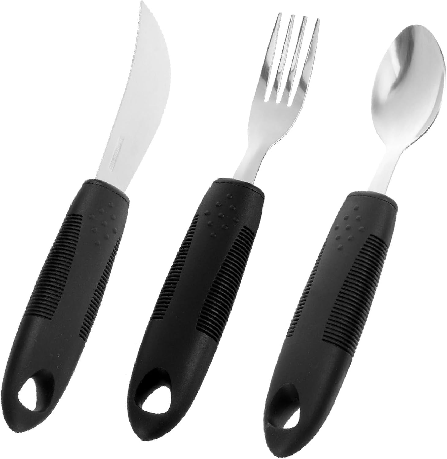 3pcs Easy Grip Silverware, Adaptive Utensil Set for Adult Built-Up Fork, Spoon and Rocker Knife for Elderly,Arthritis,Tremors and Parkinsons