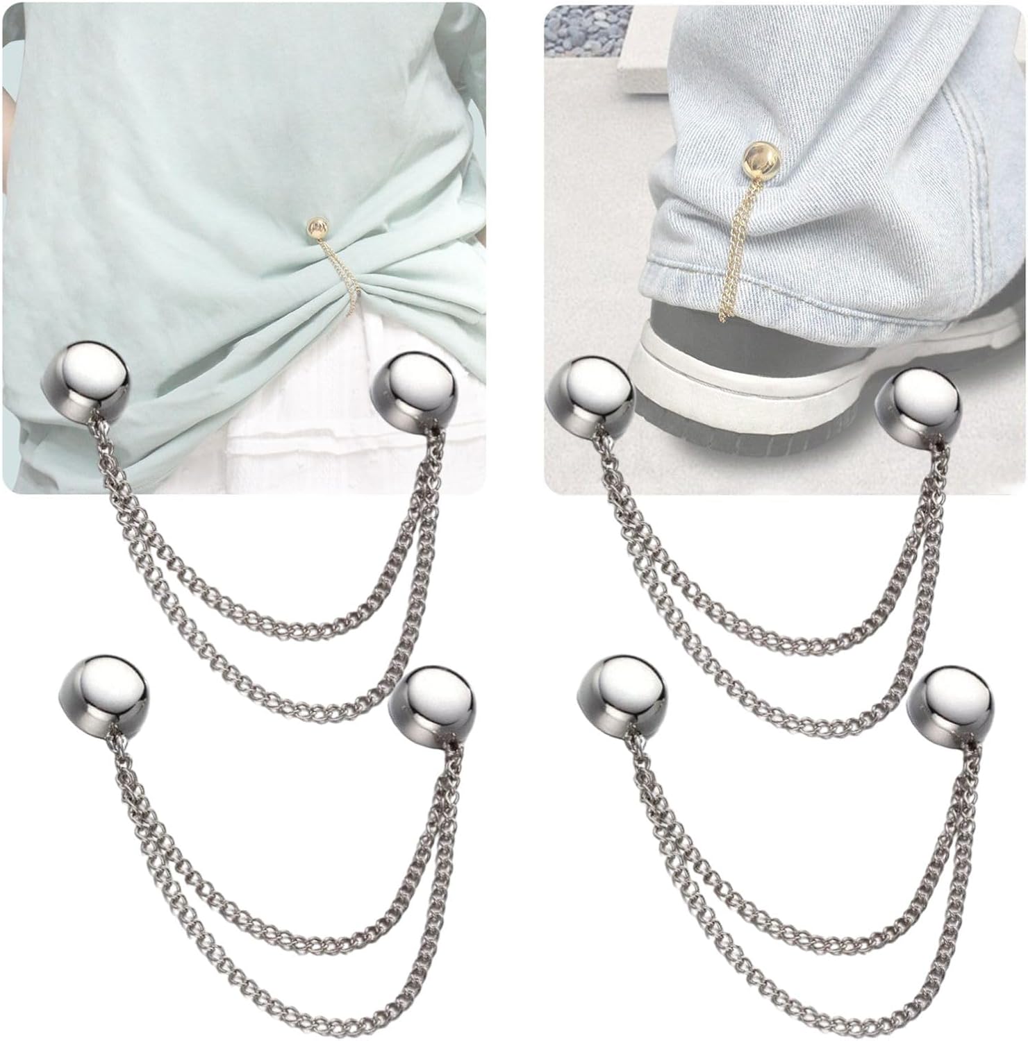 4 Pack Multi-Function Magnetic Clothing Clips, Magnetic Strength Buttons Powerful Hijab Magnets Chain Multi-Purpose Pinless Brooch for Cardigan Shawl Clothing Accessories Cuff Hem (Silver)