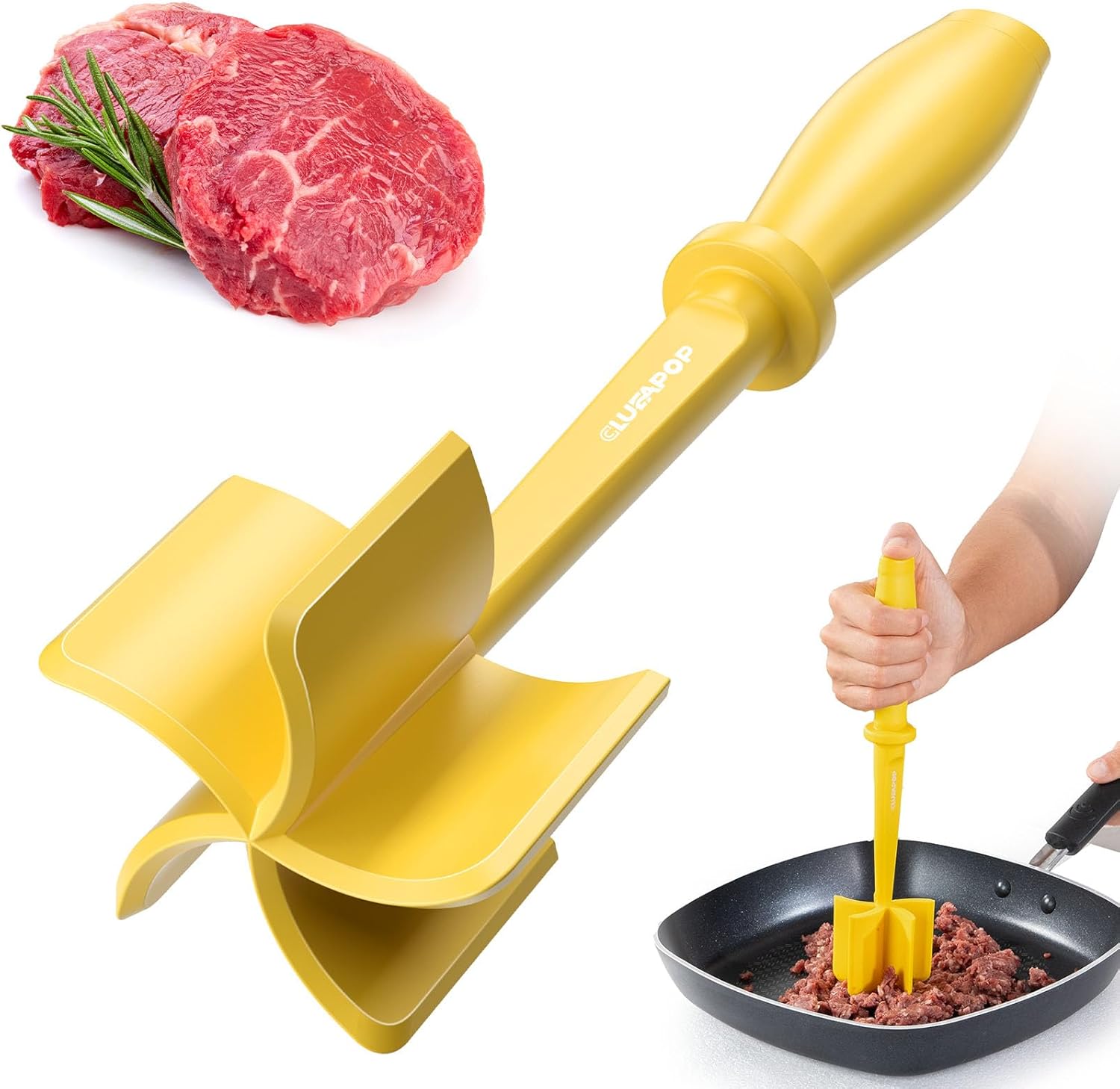 5-Curve Blade Meat Masher for Ground Beef, Heat Resistant Hamburger Chopper, Non-Stick Mix and Chop Kitchen Tool