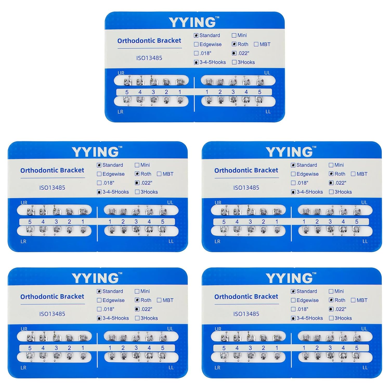 5 Packs Orthodontic Metal Brackets Dental Braces Standard Roth Slot.022 with Hooks 3-4-5
