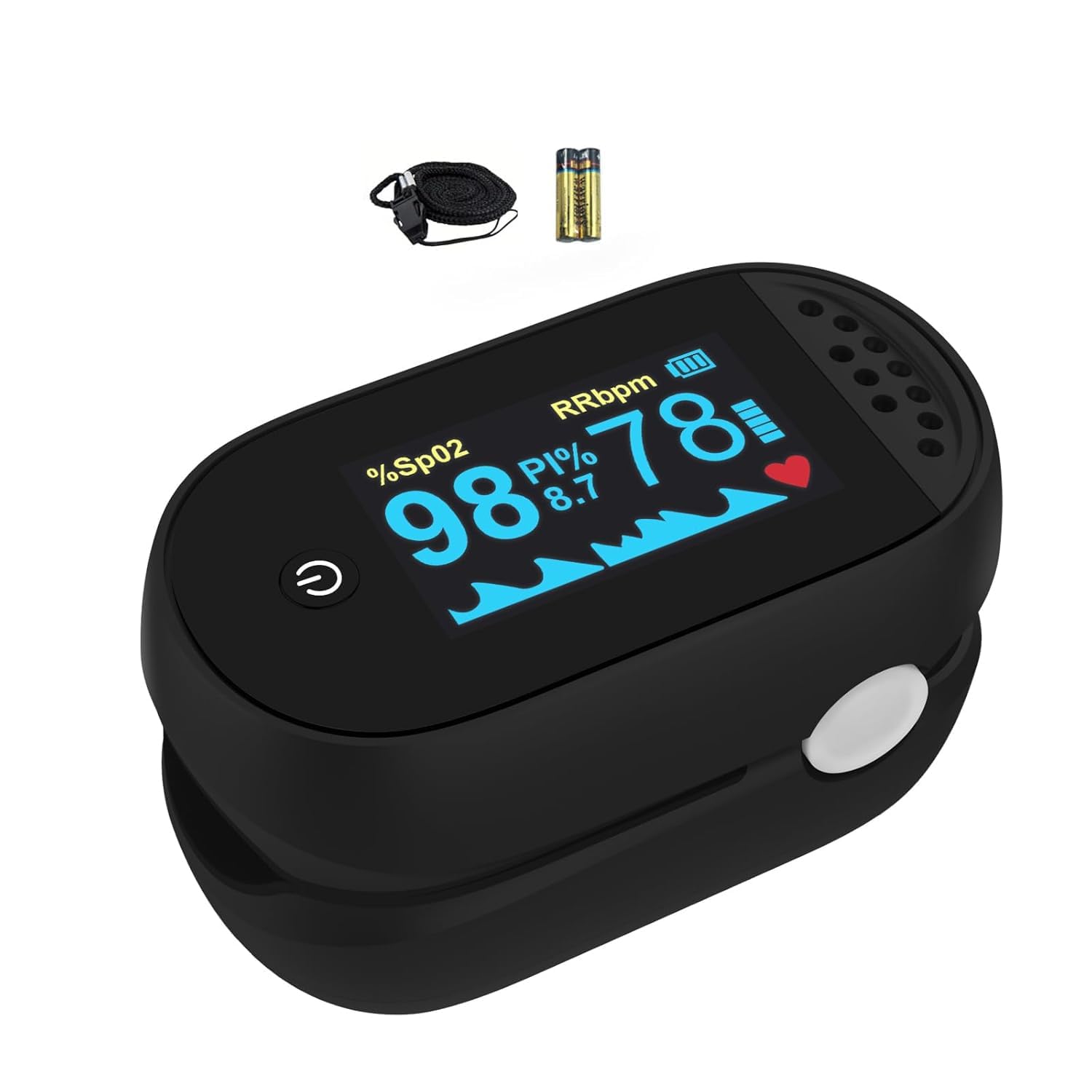 ACMC Oximeter, Features Oximeter with Alarm, Fingertip Pulse Oximeter with Alarm, Features Alarm & OLED Large Screen & Lanyard Black