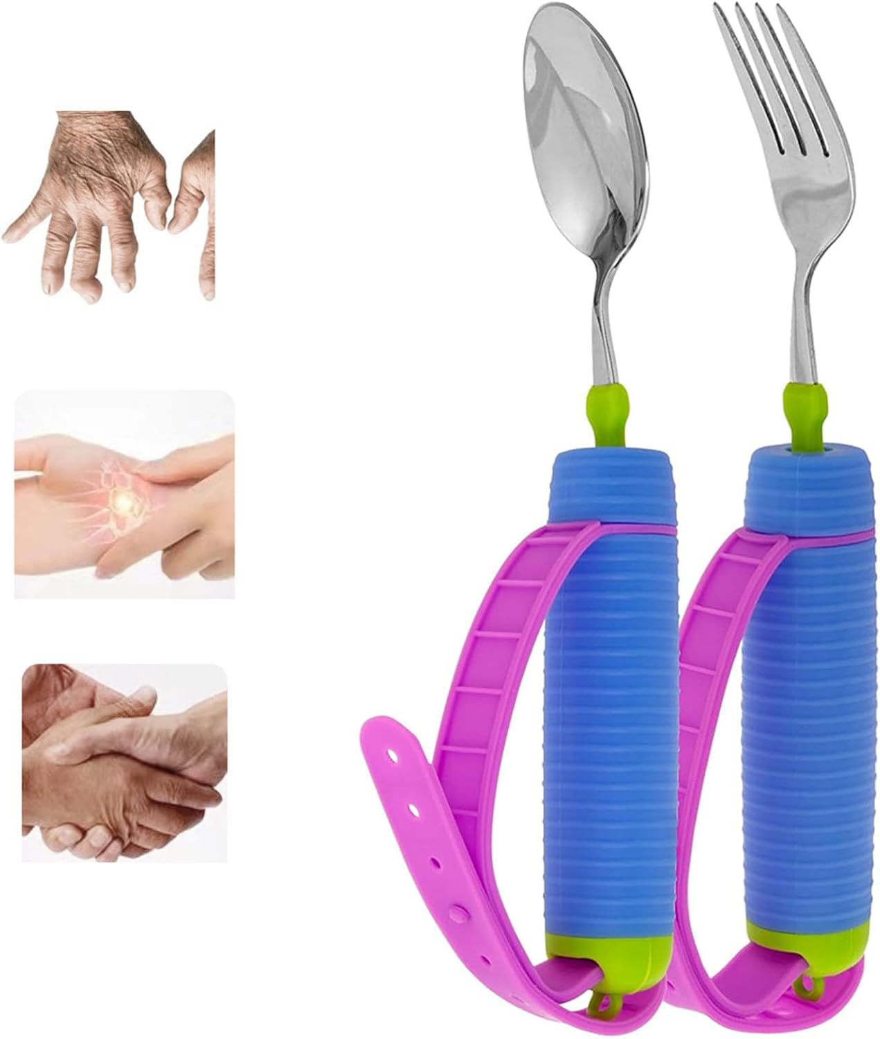 1 review for Adaptive Utensils Set For Elderly And Disabled – 360° Rotating Fork And Spoon With Adjustable Silicone Strap And Non-slip Handle – Weighted Dining Aids For Independent Eating