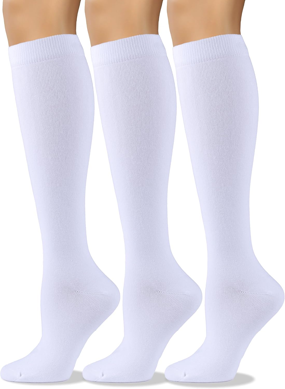 COTTON DAY Women’s Soft Combed Cotton Knee High Long Calf Dress Socks Seamless Toe Black White Gray Navy Blue Brown