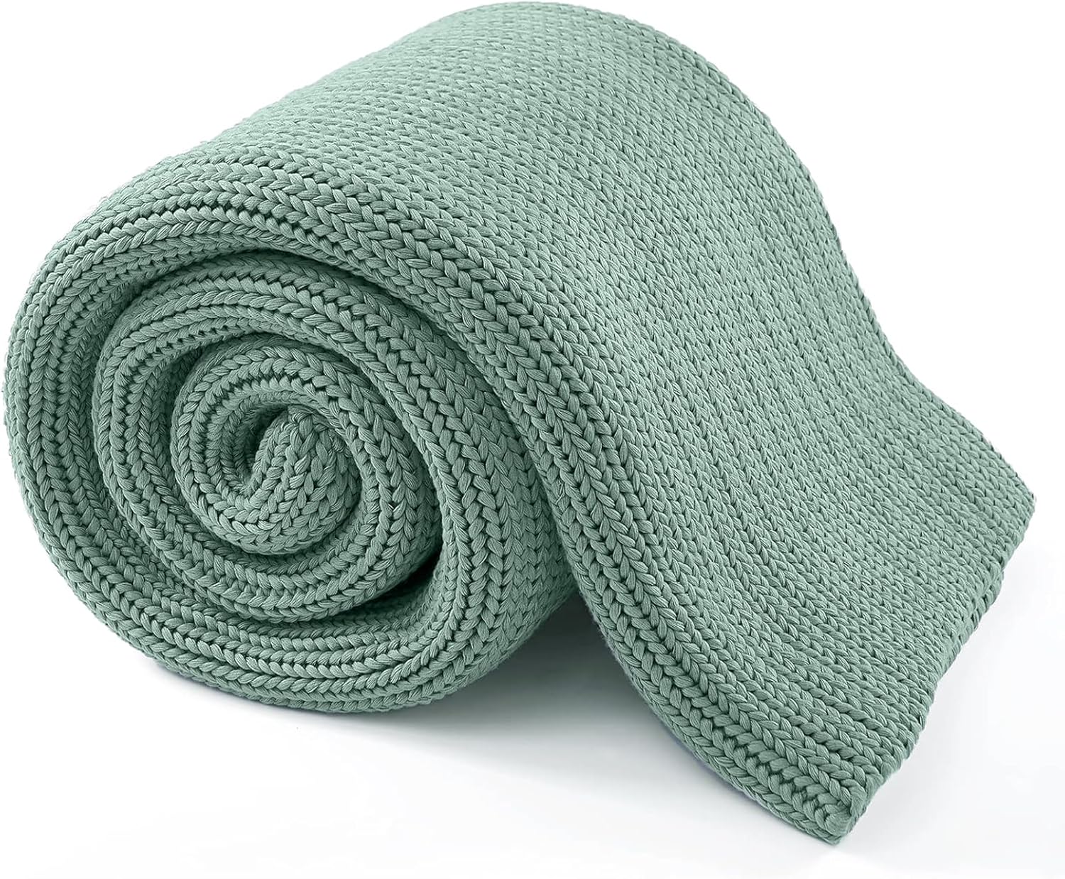 Guohaoi Knitted Weighted Blanket for Adults (Haze Green 60″x80″ 15lbs) No Beads Cooling Throw Blanket for Hot Sleepers, Home Decor Breathable Chunky Knit Heavy Blanket Use on Queen/King Size Bed