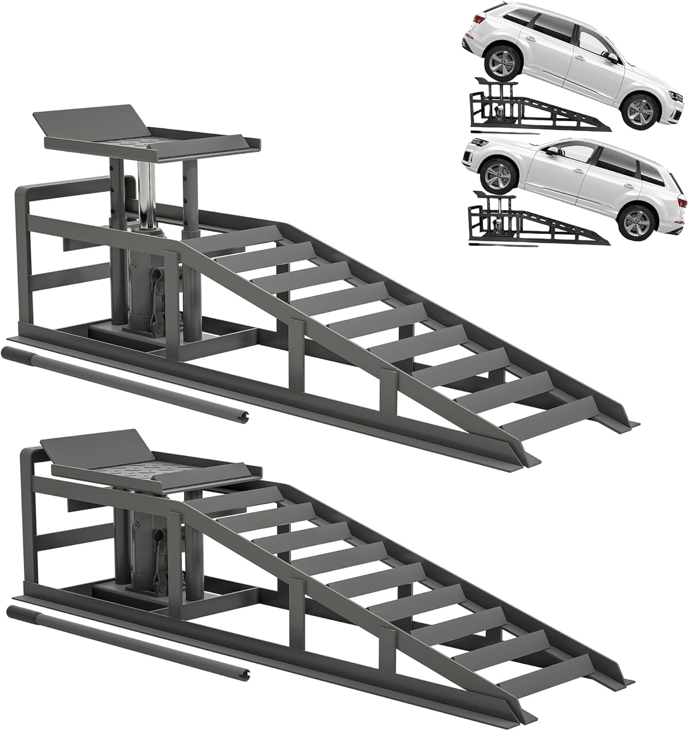 Hydraulic Car Ramps/Portable Auto Ramps 11000 lbs – 2-Pack Heavy-Duty Steel Lift Ramps with Adjustable Height (11.6″-16.2″), Low Profile Design for Oil Changes, Garage/Home Vehicle Repairs – Red
