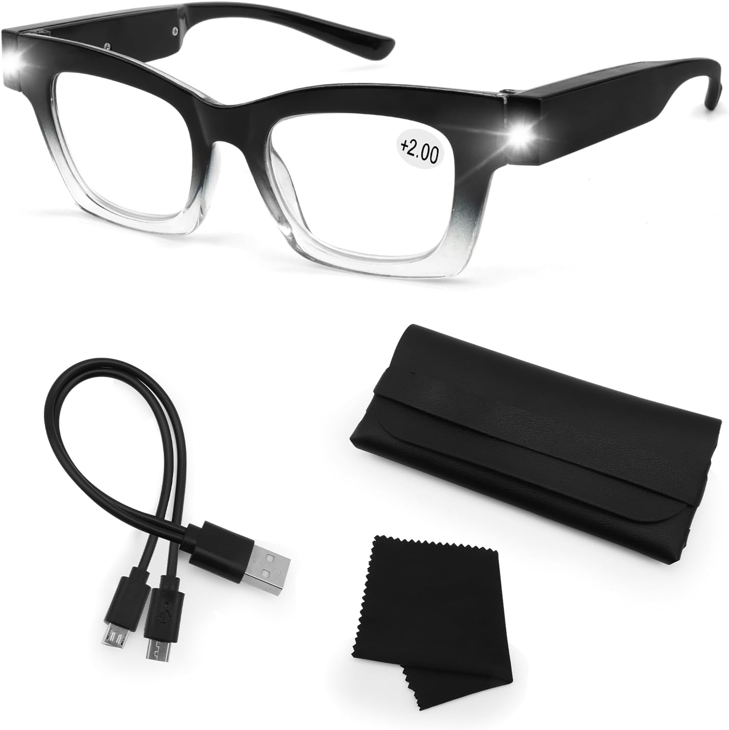 Magnifying Glasses with Light Rechargeable Reading Glasses Lighted Magnifier Eyeglasses Readers with Lights for Men