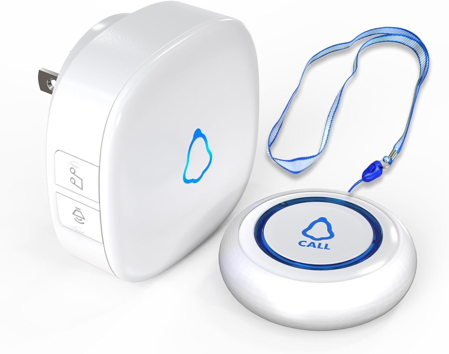 METAK Caregiver Pager Wireless Call Button for Elderly/Senior at Home, 1 Receiver + 1 Button, Medical Life Alert Necklace System for Patients, Disabled, Nurses, Emergency Bell Fall Monitor Devices