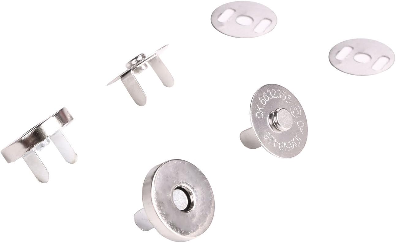 Mini Skater Magnetic Button Clasp Snaps – Closure Purses, Handbag Clothes Sewing Craft, 6-Pack (14mm, Silver)