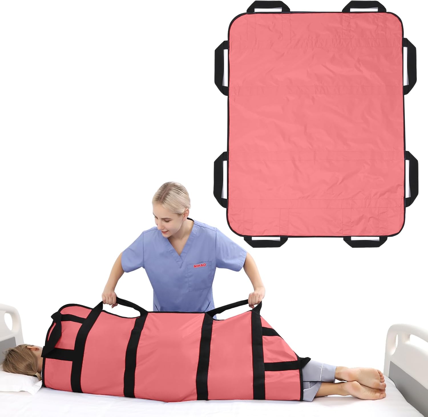 NIHAO Bed Transfer Sheet with Handles 43″ x 36″ Positioning Bed Pad Patient Lifting Mat for Turning, Repositioning Washable & Reusable Draw Sheet for Hospital & Home, Pink