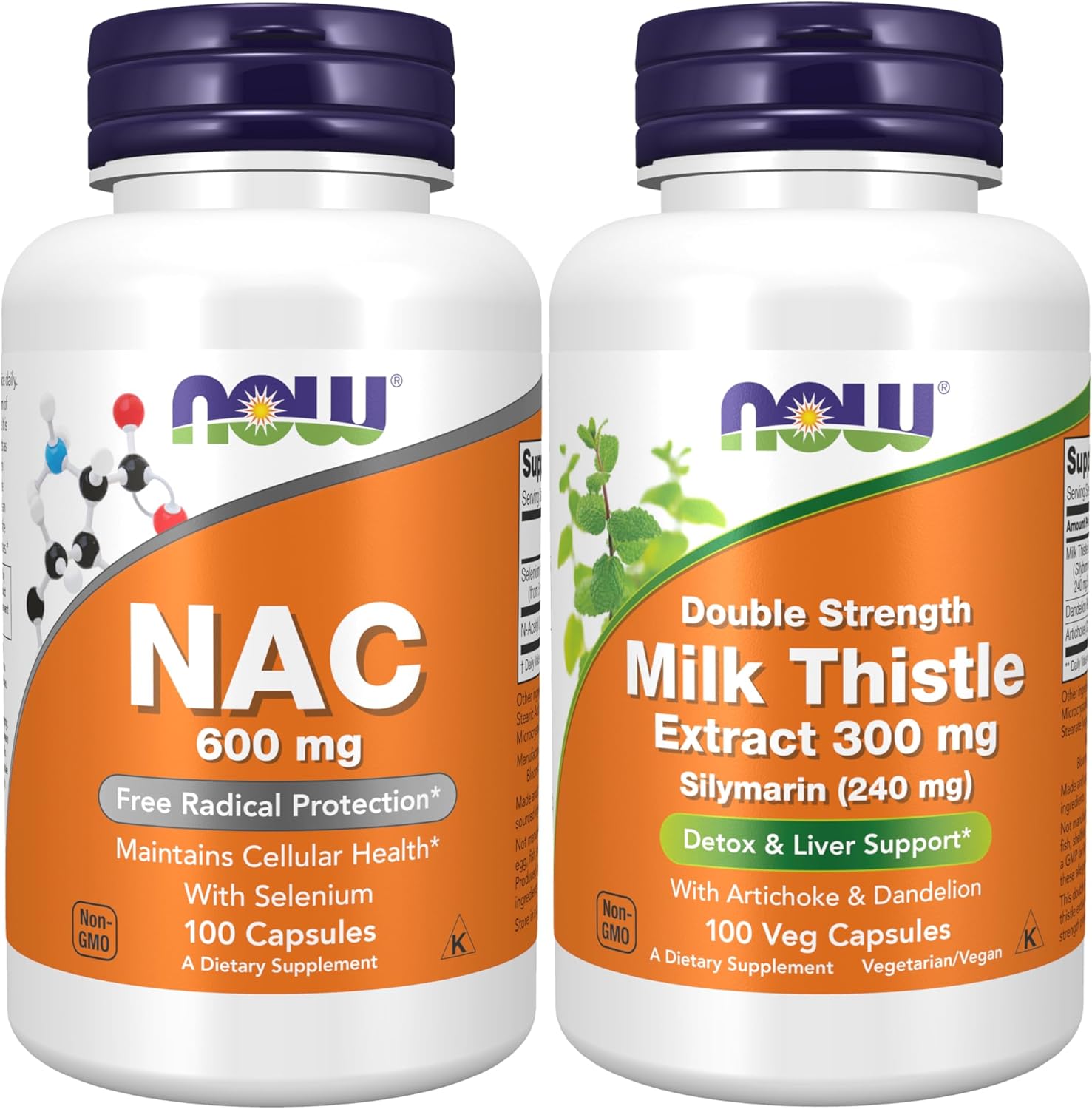 NOW Foods Supplements, NAC (N-Acetyl Cysteine) 600 mg with Selenium, 100 Capsules with Now Supplements, Silymarin Milk Thistle Extract 300 mg with Artichoke and Dandelion,100 Veg Capsules