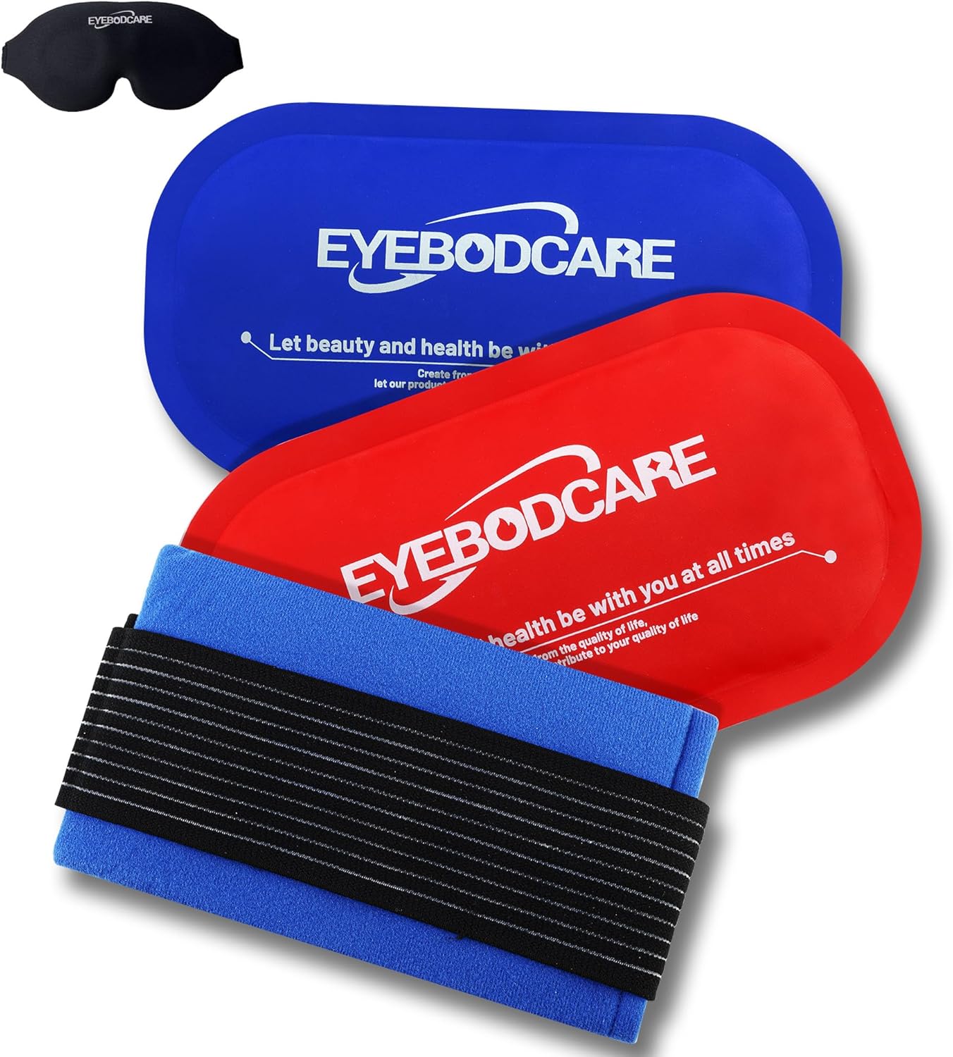 Reusable Ice Packs for Injuries, Hot and Cold Therapy Gel Ice Packs with Flexible Wrap and Eye Mask, for Joint Pain, Swelling, Muscle Pain, Knees, Back, Shoulder & More (3-Piece Set)