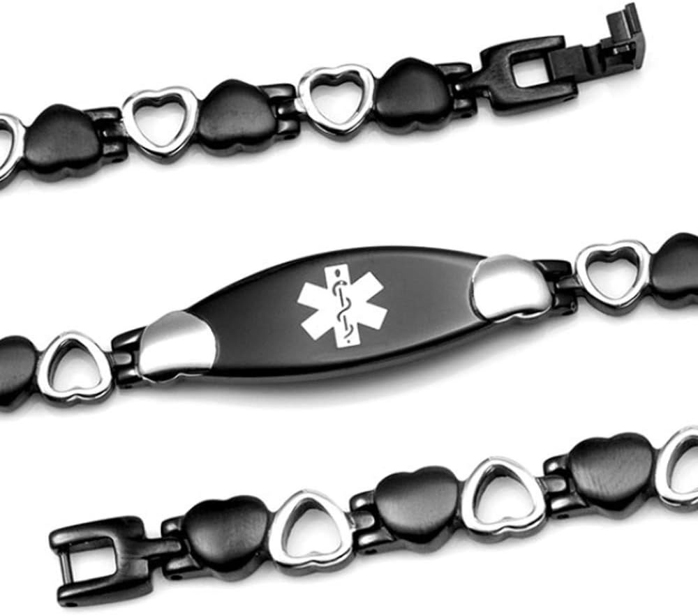 Seizure Disorder Black Heart Medical Alert ID Bracelet for Women – 8.0″