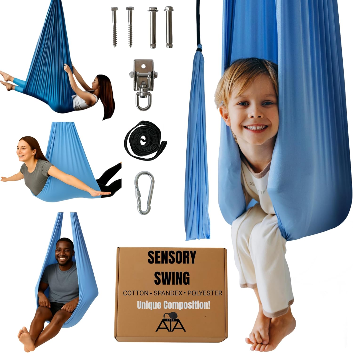 Sensory Swing Indoor & Outdoor – Cotton Spandex Polyester Unique Composition | Kid Swing – Kids Hammock | 59″x59″ Swing | Therapy Swing for Kid and Adult Holds Up to 300lbs | Kids Swing
