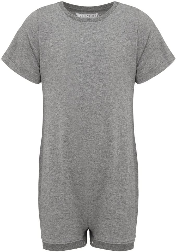 Special Kids Adaptive Clothing For Children & Adults With Special Needs, Short Sleeve Bodysuit Popper Snap Vest, XL, Grey