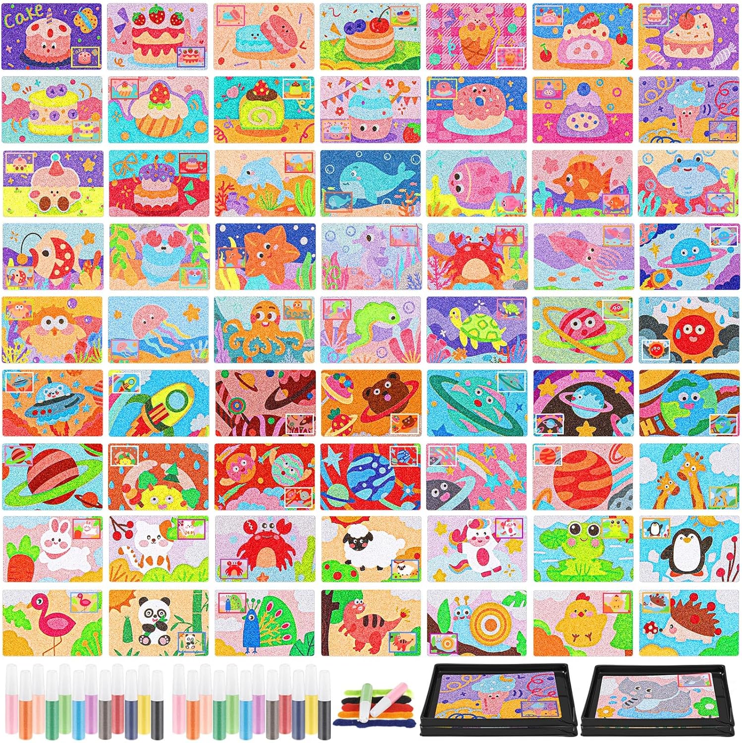 6 reviews for Tenceur 119 Pcs Kids’ Sand Art Kits Color Sand Art Pictures Peel and Stick 12 Color Kit Painting Board Painting Tray Brush Bottles (Animal,Dessert,Universe,Underwater)