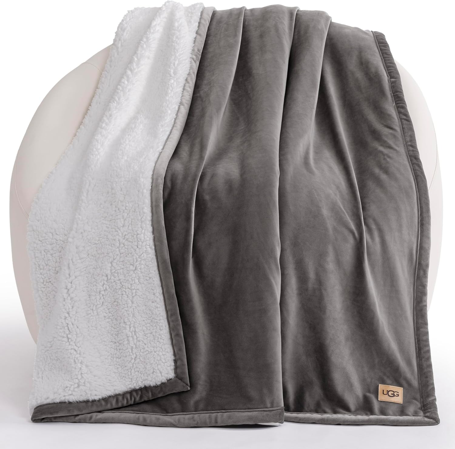 13 reviews for UGG Bliss Throw Blanket Plush Soft Fleece Fluffy Blankets for Bed or Couch Oversized Warm Reversible Machine Washable Medium Weight Home Decor Giftable Throw, 50-inch x 70-inch, Charcoal Grey