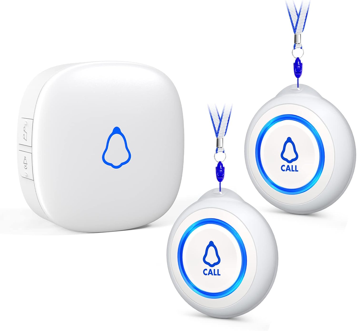 Wireless Caregiver Pager, Medical Alert Systems with 2 Call Buttons and 1 Receiver for Seniors/Elderly at Home, Emergency Panic SOS Call Bell, Nurse Calling & Patient Assistance Alert