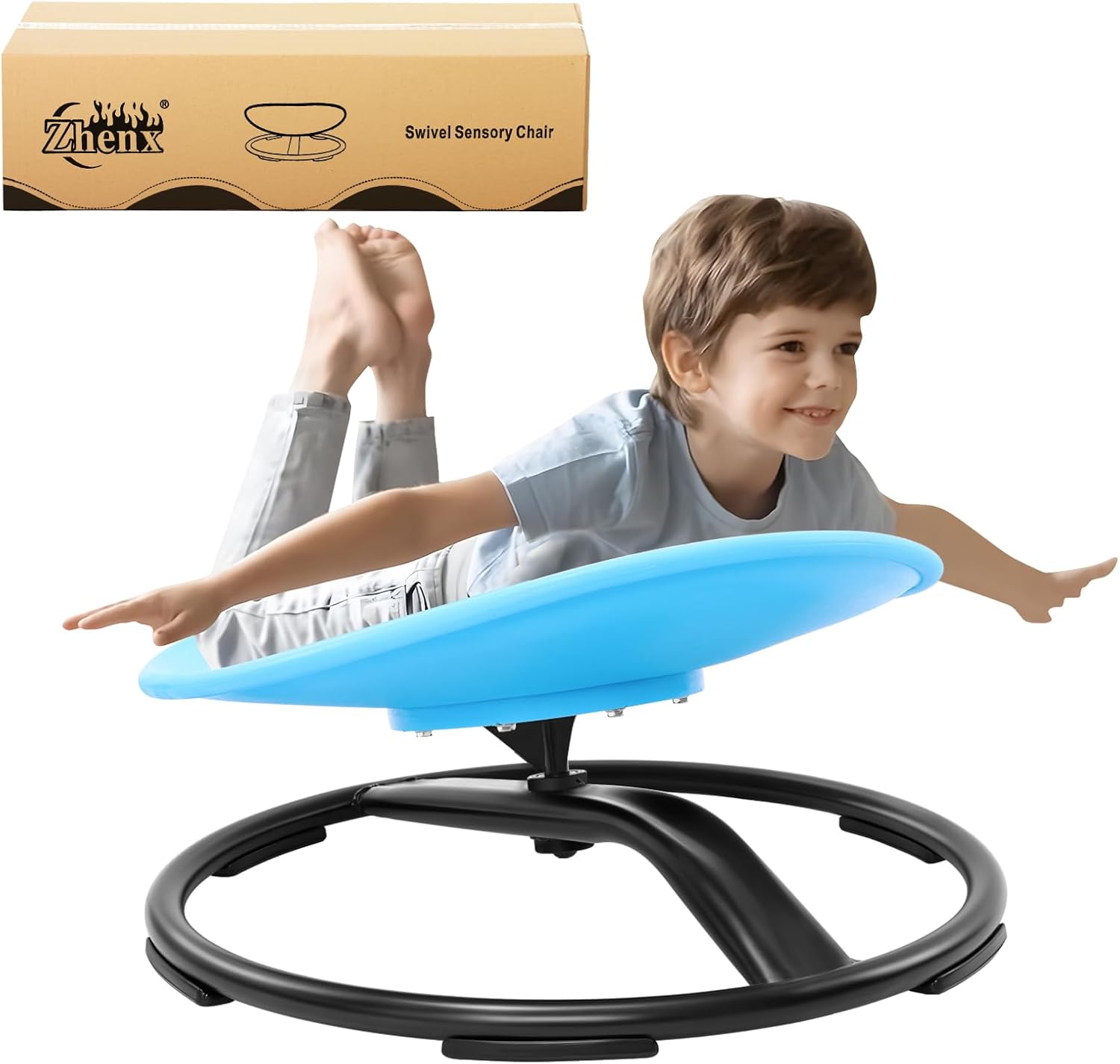 Zhenx Spinning Chair for Autistic Kids (3-18 Years), Sensory Swivel Chair for Teens with ADHD/Autism – 21×19 Inch 220LBS Weight Capacity Seat – Sit and Spin Calming Toy for Body Balance (Blue)